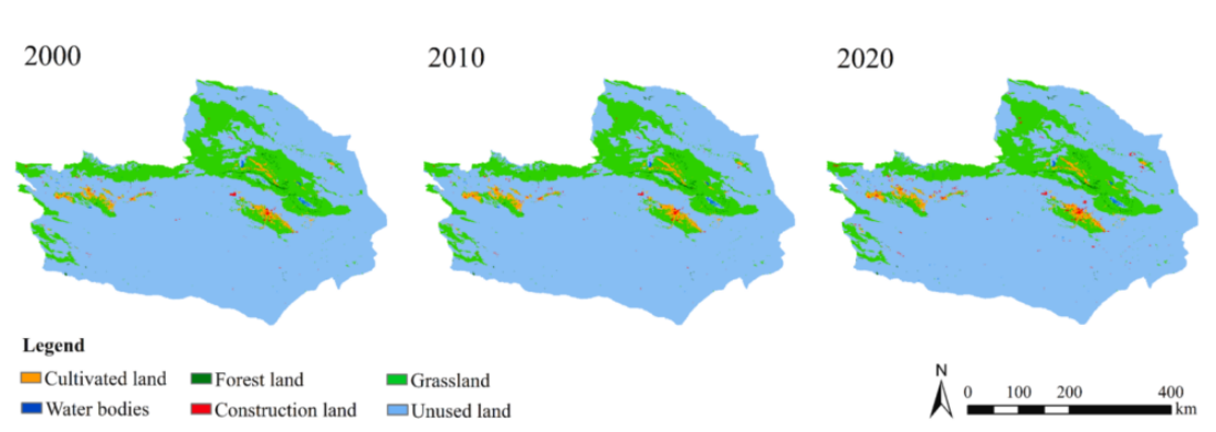 主要研究内容:本研究采用 SD-FLUS-InVEST 综合建模框架,研究了我国西北部典型干旱和半干旱地区吐鲁番-哈密盆地土地利用和碳储量的历史、当代和未来动态。从 2000 年到 2020 年,该流域的土地利用变化趋势发生了巨大变化,其特点是耕地和城市面积扩大,同时草地面积缩小,主要原因是未利用土地和草地转为农业和城市用地。