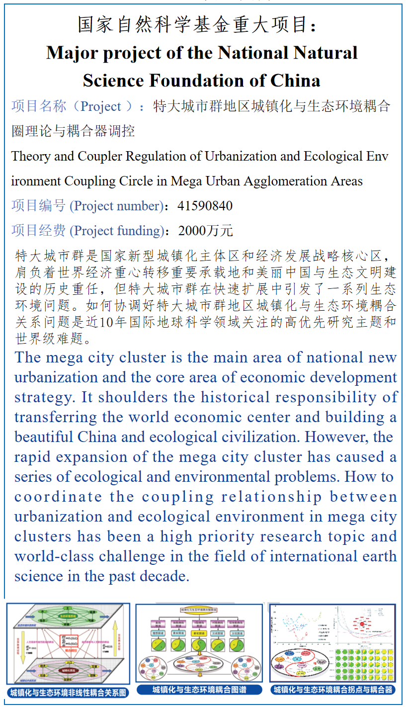 国家自然科学基金重大项目--特大城市群地区城镇化与生态环境耦合圈理论与耦合器调控